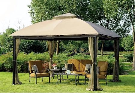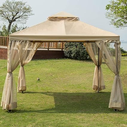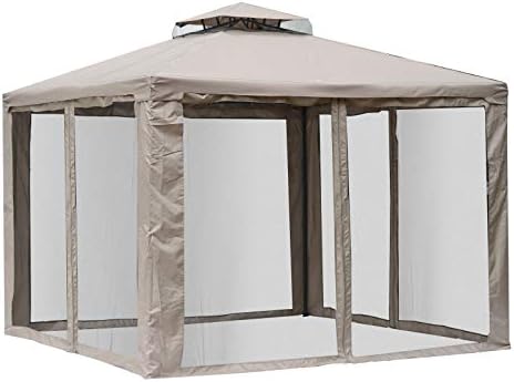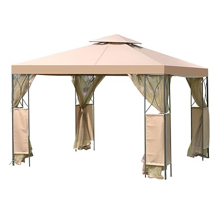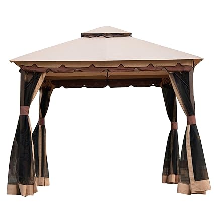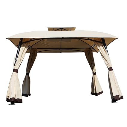 Suncrown Outdoor Patio Garden Gazebo 10 X 10 Ft All Season Permanent Gazebo With Vented Soft Canopy Double Square Tops And Mosquito Netting Beige