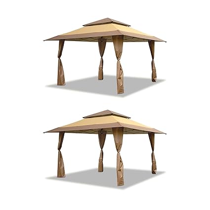 Homevibes 13 Ft Pop Up Canopy Tent Outdoor Patio Gazebo Brown