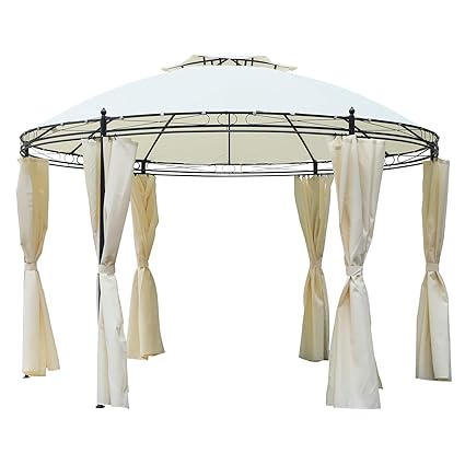 Outsunny 11 5 Steel Fabric Round Soft Top Outdoor Patio Dome Gazebo Shelter With Curtains Cream White