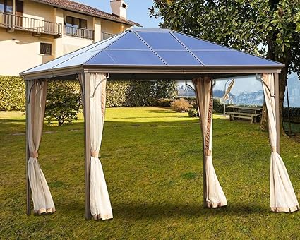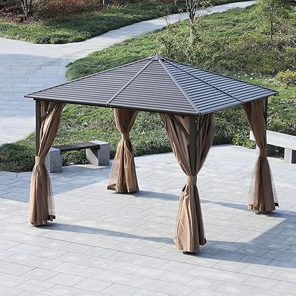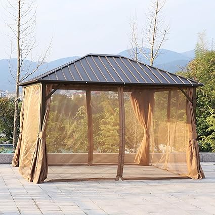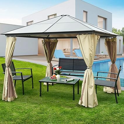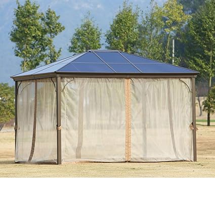 Superday Outdoor Garden Gazebo 12 X 10 Patios Gazebo Canopy Permanent Aluminum Hard Pc Top Mosquito Netting