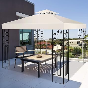 Mefo Garden 12 X 12 Ft Outdoor Patio Swan Gazebo Canopy For Backyard Iron 250gsm Polyester Canopy Beige