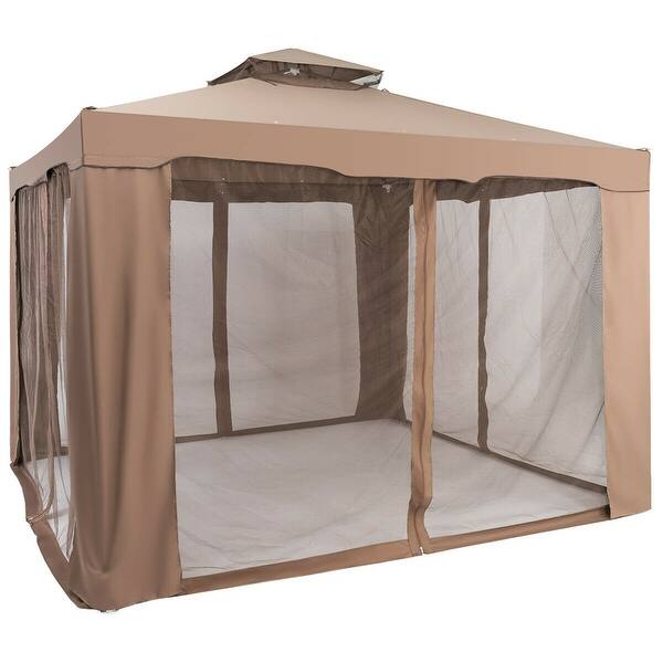 Solaura Patio Furniture 10 X 10 Outdoor Garden Gazebo Light Brown Canopy Tent With Mosquito Netting