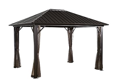 Sojag 500 8153675 Genova Hardtop Gazebo 4 Season Outdoor Shelter With Mosquito Net 10 By 12 Dark Brown