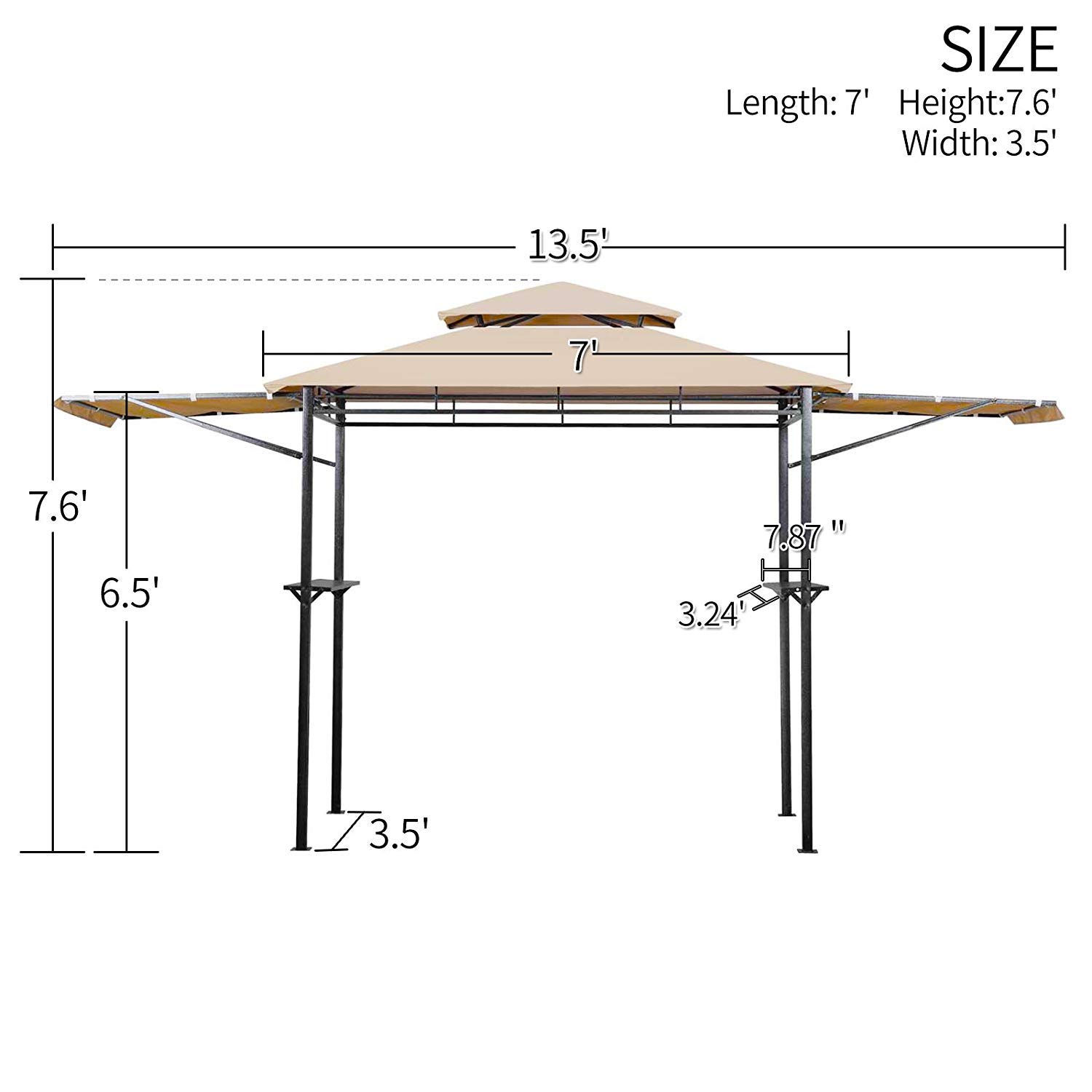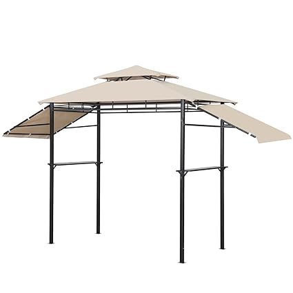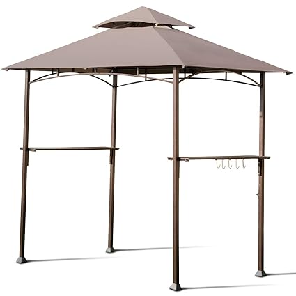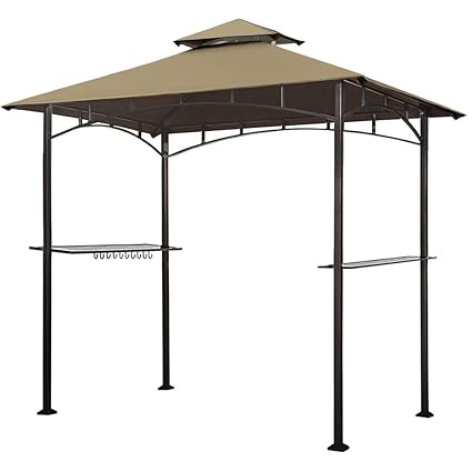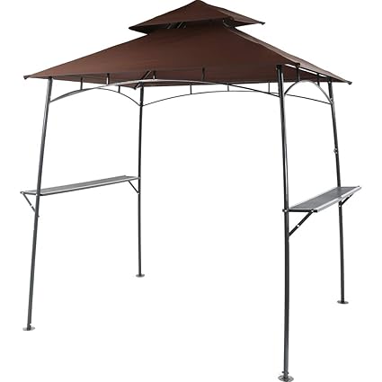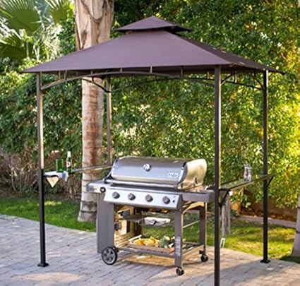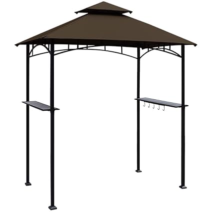 Patio grill gazebo. Keymaya 8x5 grill gazebo shelter for patio and outdoor living bbq shelter tent double tier soft top canopy and steel frame with bar counters bonus led light khaki 42 out of 5 stars 3. Mainstays grill gazebo light brown180g polyester canopy top with cpai 84 fire retardant treatmentcolor fastness 80h 40 to prevent fading due to exposure from the sunwater repellent mildew and stain resistantroof style grill gazebo has a steel frameholes at bottom for anchoring if desired2 piece side bar for more strength and stability. Find quality gazebos accessories online or in store.