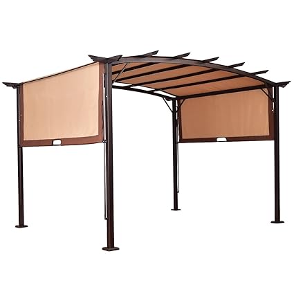 Tangkula 12 X 9 Pergola Gazebo Canopy Outdoor Patio Garden Steel Frame Sun Shelter With Retractable Canopy Shades
